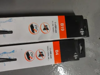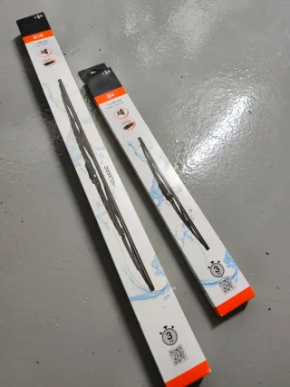 Se venden dos limpiaparabrisas de la marca Carrefour, modelos B19 y B4. - Limpiaparabrisas B19: 1 x 450 mm. - Limpiaparabrisas B4: 1 x 400 mm. - Modelo Classic.