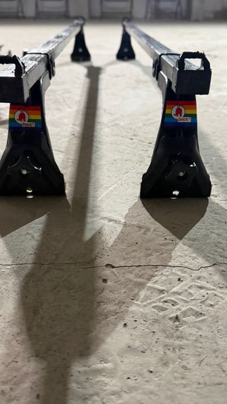 Conjunto de barras de baca para coche. - Barras de carga negras. - Soportes de fijación incluidos. - Material metálico resistente. - Incluye porta bicicleta