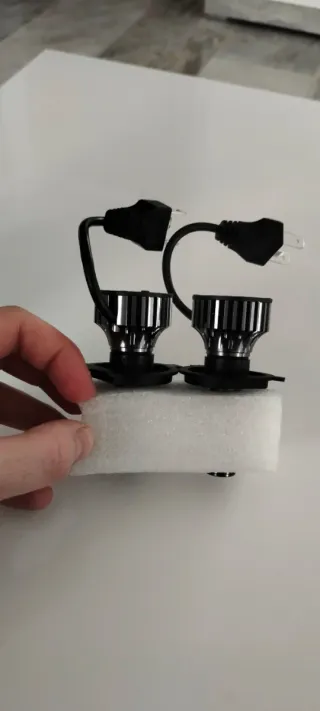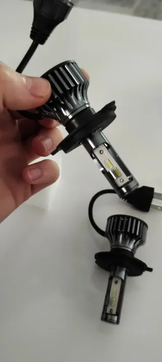 Se venden dos bombillas LED H4 para coche. Son de 22.000 mil Lumenes con un color de 8000k se ven entre blancas y azul, alumbra bastante bien y tiene su propia ventilación pará la disipación de calor, yo las compré pará mi moto pero desafortunadamente por culpa del ventilador no podía instalarlas por falta de espacio, estan prácticamente a estrenar las dos bombillas. - Diseño con aletas para disipación de calor. - Conector H4