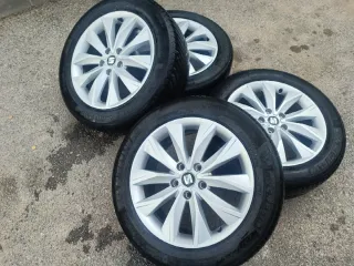 Juego de Llantas originales de Seat para un Ateca. 575601025M. El tamaño es radio 17, et 45, LK tornilleria 5x112, buje 57,1 mm. Impolutas y sin un solo rasguño. Con los sensores de presión originales. Las entrego con los 4 neumáticos michelin al 50-70% 215/55/r17 98w.Compatible con el grupo vag (volkswagen, audi, seat, skoda). También son validas por tornillería y buje para karoq, Arona, kamiq, karoq, Arona, tarraco, t-roc, Tiguan, t-cross, León, a3, q3, a6, q5, q2, Caddy, etc.