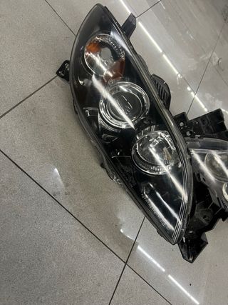 Faros delanteros para Mazda 3. - Diseño deportivo en color negro. - Incluye óptica y portalámparas.