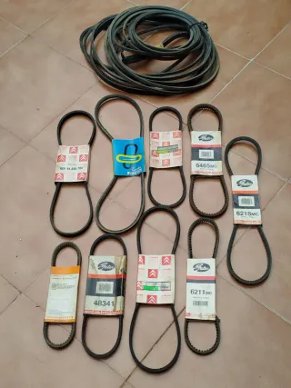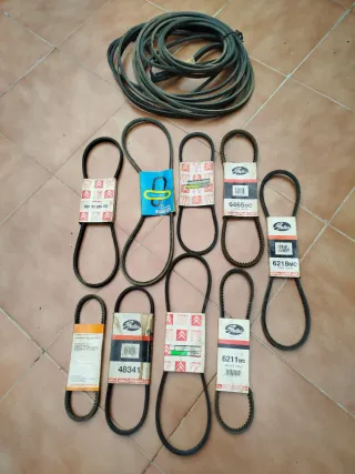 Lote de correas trapeciales para coches clásicos de los años 80. Varias marcas y referencias. Correas trapezoidales de accesorios, alternador, ventilador, distribución, son de la época, precio a convenir, - Correas de goma. - Varias marcas: Gates, Citroën, Peugeot ,Seat,Firelli. Etc - Referencias visibles: 91.536.733, 6465MC, 6218MC, 48341, 6211MC.