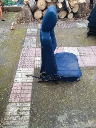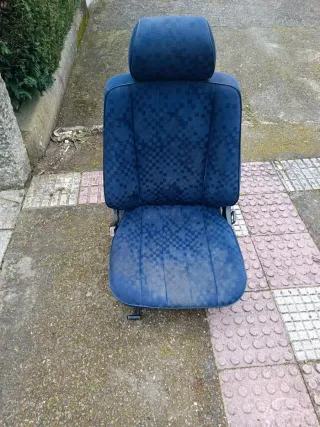Asiento de conductor de color azul para Mercedes 190. Tiene algo tocado un rail - Tapicería de tela. - Reposacabezas integrado.