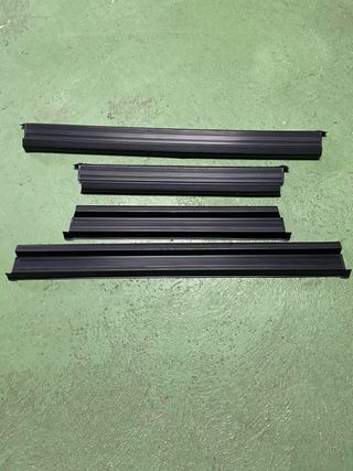 Juego de molduras para el marco de entrada al habitáculo de un Mercedes 190 W201. Piezas de plástico negro. - Incluye 4 molduras de diferentes tamaños delanteras y traseras. -Disponibles en color marron,gris,azul,verde y negro -Precio unidad