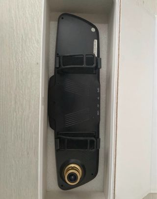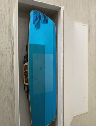 Espejo retrovisor con acabado azul y detalles dorados. - Botones de control: OK, POWER, UP, DOWN, MENU. - Diseño curvo. -Grabador de vigilancia