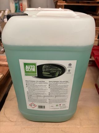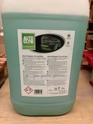 Garrafa de 25 litros de Autoglym Multiwash TF3 Extra, el limpiador multiusos de referencia en la gama profesional de Autoglym. Ideal para entusiastas del detallado de coches o talleres que busquen resultados impecables. Es un producto altamente concentrado y versátil, diseñado para eliminar la suciedad más difícil, grasa y película de contaminación de la carretera de forma segura. • Multiusos: Sirve para carrocería, cristales, llantas e incluso limpieza de interiores, con agradable fragancia. • Seguro: Minimiza el riesgo de dañar las superficies del vehículo. • Eficaz: Arranca la suciedad de la carretera, etc. • Nuevo y precintado.