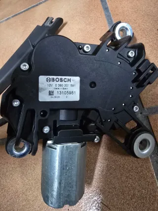 Motor para el limpiaparabrisas trasero de un Opel Astra H. Incluye el brazo del limpiaparabrisas y algunos tornillos y muelle. - Motor de limpiaparabrisas trasero. - Brazo limpiaparabrisas. - Tornillería y muelle.