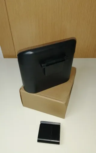 Papelera compacta de color negro, diseñada para colocar en el interior de un vehículo. Incluye un soporte. - Diseño moderno y discreto. - Material resistente. Se entrega en persona No uso bizum ,sólo efectivo