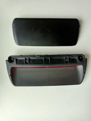 Pieza de repuesto para la tercera luz de freno de un Citroen C5. Incluye la carcasa negra y bombillas. - Carcasa superior negra. - Base inferior con alojamiento para luz.