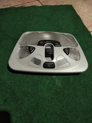 Módulo de techo solar para W209 con luces e interruptores integrados. - Diseño gris claro. - Incluye dos luces de lectura. - Botones para control de techo y luces.