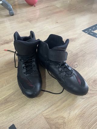 Botas de moto de cuero sintético negro, ideales para proteger tus pies y tobillos. - Cierre de cordones y sistema BOA. - Suela de goma antideslizante. - Diseño alto para mayor protección. A ESTRENAR TALLA 47