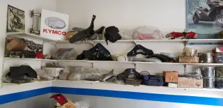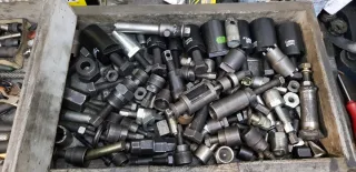 Conjunto de piezas y herramientas para motocicletas. - Variedad de componentes metálicos. - Incluye extractores y adaptadores. - Ideal para mantenimiento y reparación.