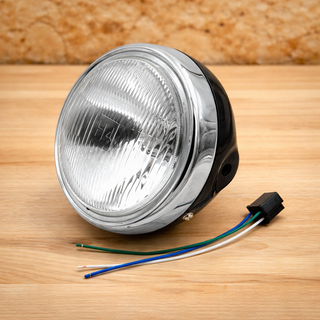 ¡Mejora tu visibilidad con estilo retro! Faro delantero universal con cuerpo de metal en negro mate. Su diseño clásico es ideal para proyectos Cafe Racer, Scrambler o Bobber que buscan un frontal limpio y funcional. ✅ Detalles: Óptica: Cristal de alta calidad para un haz de luz nítido. Bombilla: Compatible con H4 (fácil sustitución y actualización). Funciones: Luz de posición, corta y larga integradas. Material: Carcasa metálica resistente a vibraciones. Estado: Nuevo a estrenar. #caferacer #faromoto #h4 #scrambler #custom #vintage #motos #iluminacion #bobber