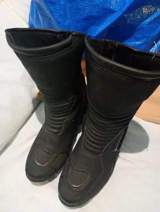 Botas de moto de cuero, diseñadas para ofrecer protección y comodidad en tus rutas. - Material exterior de cuero. - Cierre con velcro. - Suela de goma antideslizante. - Refuerzos en tobillo y puntera. Talla 46