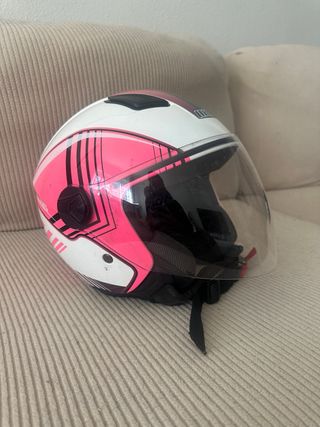 MARCA • MODELO: Casco para moto, marca Unik. Con visera. TALLA • COLOR: Talla: XS. Color, rosa (pink) y blanco (white). ESTADO: En buen estado y bien conservado. Tiene alguna picada, se aprecia en las fotos.