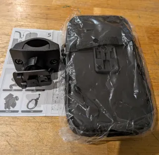 Funda para smartphone de manillar de moto o bici. Permite el uso de la pantalla táctil. - Compatible con smartphones de hasta 6,5 pulgadas. - Incluye soporte para manillar (ojo, no apto para retrovisor). - Diseño impermeable. Está como nuevo, sin usar, lo compré para el mástil del retrovisor y no sirve.