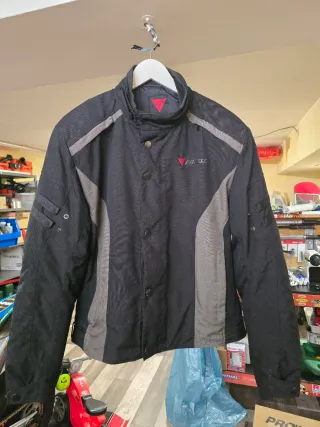 Chaqueta de moto Dainese en color negro y gris, talla 52. - Fabricada en cordura. - Tecnología impermeable D-dry. - Diseño con paneles grises. - Cierre de botones y cremallera. - Forro interior térmico. - Protecciones en el interior.