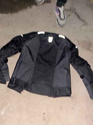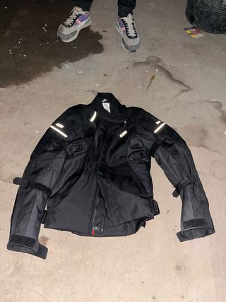 Chaqueta de moto Rainers T50-60 en color negro y talla 4XL. - Con protecciones internas, espaldera y coderas. - Diseño con detalles reflectantes en mangas y frontal. - Cremallera frontal. - Bolsillos con cremallera. - Forro interior. - Casi a estrenar.