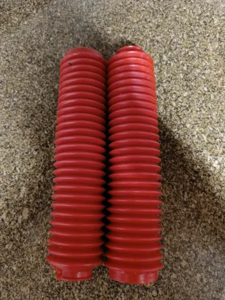 Set de fuelles rojos para motocicleta. Protegen las barras de la suspensión. Se compraron equivocados de medidas 34 cms de largo