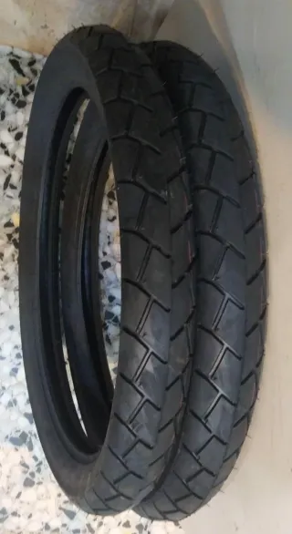 Hola vendo este juego o par de neumáticos nuevos válidos para Vespino derbi Variant Start Mobylette gac Puch maxi etc medida 2 1/2 17 43J REFORZADOS marca Mitas. NO ES NEGOCIABLE
