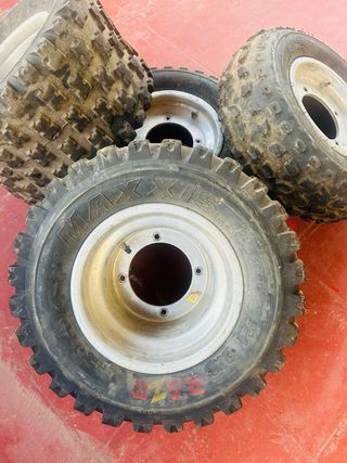 Juego de cuatro llantas reforzadas y neumaticos en perfecto estado Maxxis para quad Yamaha. Listas para montar. Yamaha raptor 700, 660, 350, warrior, banshee, yfz