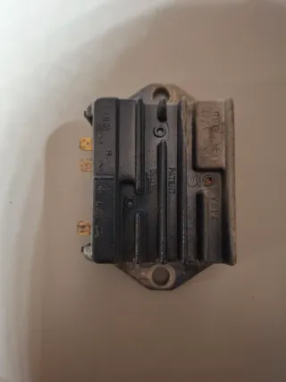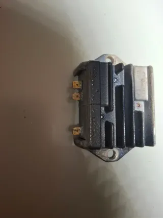 Regulador para Vespa PX. Pieza de recambio. - Conexiones metálicas. - Carcasa negra con aletas de refrigeración.
