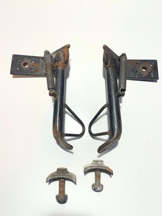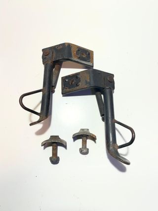 Caballete central para Derbi Variant DS. Se encuentra en el estado que se muestra en las imágenes. - Pieza de metal. - Incluye muelle y eje.
