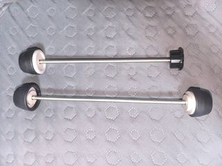 Set de protectores para la horquilla y el basculante de una motocicleta. - Fabricados en metal y plástico. - Diseño cilíndrico con tapas protectoras.