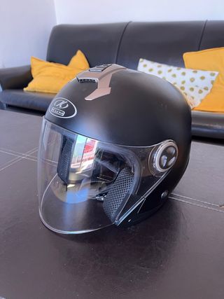 Casco de moto Jet de la marca Kum en color negro y con visera. regalo: funda de casco negra motocard nueva - Diseño moderno. - Visera transparente. - Marca: Kum. - Talla M