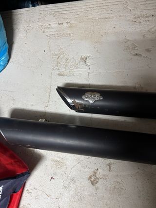 Sistema de escapes para Harley Davidson marca Supertapp - Modelo Mean Mothers. - Acabado negro mate anticalorica de calidad. - Montados en una Fatboy 2002 pero creo que sirven para softail hasta 2017. - Hueco para sonda lambda. - Sonido espectacular.