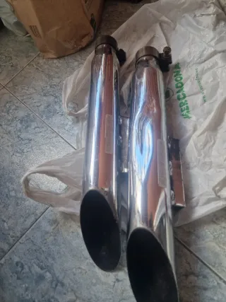 Se venden escapes originales de Harley Davidson Fat Bob del año 2008. Part Number 64705-08. Están en buen estado. Los traia la moto cuando la compré, son los que he usado para pasar la ITV. Los vendo porque vendí la moto. Sólo tienen pequeños arañazos, ver en las fotos.