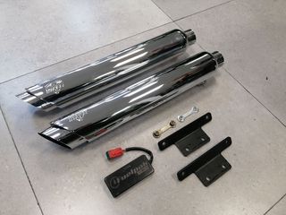 Sistema de escapes Miller para Harley Davidson Street Bob 114 M8. HOMOLOGADOS - Diseñados para modelos M8. - Compatibles con normativa Euro 5. - Valido para todas las Softail M8 con doble salida menos las de rueda trasera ancha. - incluyen Db killers y Db killers deportivos.