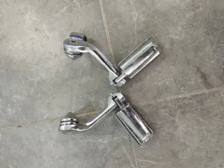 Par de reposapiés para defensa de motocicleta Harley Davidson. El cromado ha visto mejores momentos, pero son completamente funcionales y se pueden regular al gusto.