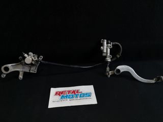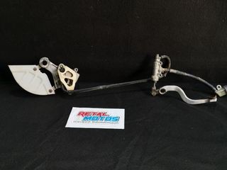 Freno trasero completo válido para honda crf 250 y 450 en perfectas condiciones completo pinza bomba latiguillo soporte de pinza pedal..... Disponemos de todo tipo de recambios para la moto de campo Realizamos envíos, más información por teléfono o WhatsApp, Retalmotos en ecija Sevilla +34 622909105.