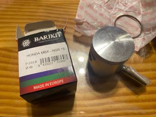 Kit de cilindro y pistón para Honda MBX NSR 75. - Cilindro rectificado a 49.00MM. - Pistón completo nuevo marca BARIKIT. - No se ha llegado a montar. - Bulon 12 mm , no vale para NS1. - No vale para modelos de 50 cm3. - No negociable.