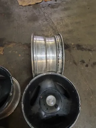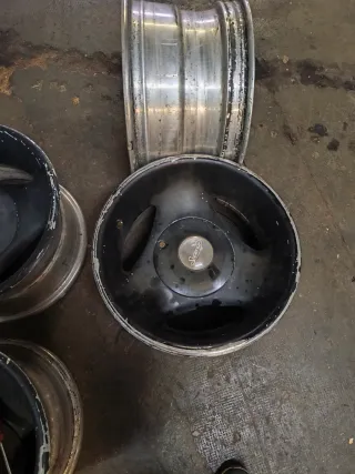 Juego de 5 llantas de chapa de 15 pulgadas para Jeep Grand Cherokee ZJ pintadas en negro. No tienen golpes ni nada raro. Los neumáticos están muy viejos, no valdrían. .1 llanta es de carretilla. - Diámetro: 15 pulgadas. - Material: Chapa. - Compatibles con Jeep Grand Cherokee ZJ Recogida en mano. No se envían.