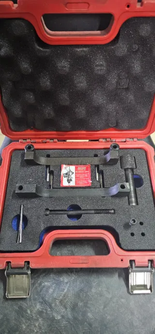 Maletín para reglaje de motor de Jeep. Incluye herramientas específicas para la puesta a punto. - Maletín rojo. - Espuma protectora interior. - Herramientas de metal.