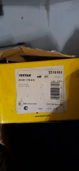 Pastillas de freno delanteras TEXTAR. - Referencia: 23181 179 0 5 - Compatibles con Fiat Punto (1996-) y Lancia Y (1995-2003). - Homologación E1 90R-011026/603. - Incluye 4 pastillas (1 set). - Fabricado en Alemania.