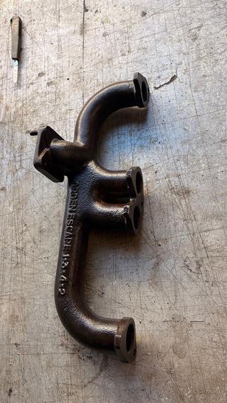 Colector de escape para Land Rover Serie II. Pieza de hierro fundido con acabado oscuro. - Diseñado para modelos Serie II. - Montaje con 4 tornillos.