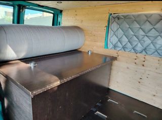 Mueble diseñado para camperizar una Mercedes Vito. Fabricado con madera y detalles metálicos. - Estructura de madera. - Superficie de tablero oscuro. - almacenamiento en parte delantera - extendible con soportes incluidos para cama completa - incluye fogones/horno bayasun y fregadero con almacenamiento de aguas sucias y limpias . listo para empezar tu vida camper !