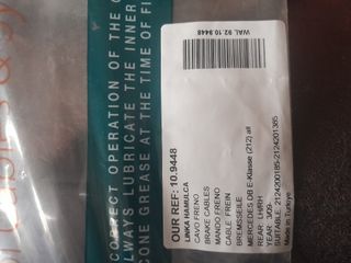 Cable de freno nuevo para Mercedes-Benz Clase E (212). - Referencia: 10.9448 - Compatible con E-Klasse (212) todos. - Posición: Trasero LH/RH. - Año: 3/09- - Adecuado para: 2124200185-2124201385. - Fabricado en Turquía.