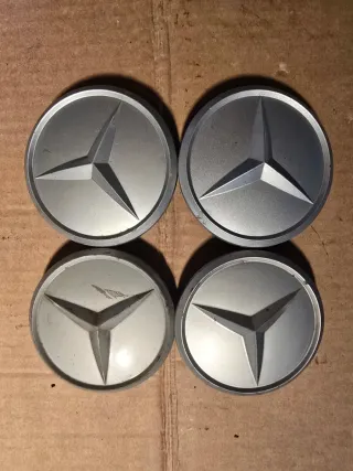 Juego de 4 tapas de buje para llantas de Mercedes-Benz 190. Diseño plateado con el emblema de la estrella. 25 € /UNIDAD - Compatibles con Mercedes 190. - Acabado plateado. - Emblema de estrella Mercedes-Benz.