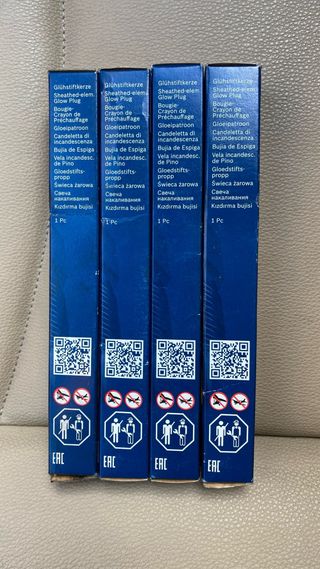 Juego de 4 calentadores/bujias de precalentamiento Bosch para BMW/MINI Nuevos y precintados en sus cajas menos 1 que sacamos para comprobar si eran iguales que los míos y resultó que no. Se me pasó el plazo para cambiarlos. Tengo la factura. Validos para muchos modelos de BMW (Serie 1, serie 2, serie 3, serie 4, serie 5, serie 7, serie X) y MINI Cooper SD 170CV - Marca: Bosch - Tipo: Bujía de precalentamiento - Compatibilidad: BMW/MINI - Referencias: BMW - 12 23 0 035 934 BMW - 12 23 7 803 368 MINI - 12 23 0 035 934