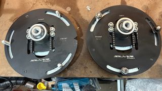 Copelas regulables Silver Project para Mini F56. Permiten ajustar la caída de la rueda. Usadas 1 semana solamente - Fabricadas en aluminio negro. - Incluyen marcas de ajuste. - Diseñadas para el eje delantero.