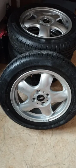 Juego de llantas para Mini Cooper. - Medida: 175/65 R 15. - Diseño deportivo de 5 radios. - Logo de Mini en el centro.