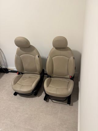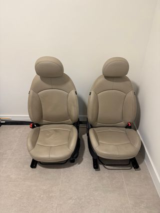 Se venden asientos delanteros de piel para Mini Countryman en color beige. Incluyen las puertas interiores a juego. 5 PLAZAS Muy cuidados, en muy buen estado, pero no nuevos! Vienen de mi Mini (primera mano) pero cambiados por cambio dd gusto. Abstenerse ofertas absurdas, y solo me interesa su venta, no cambios