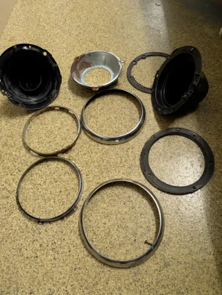 Cocos uno de plástico y otro metálico. Aros de sujeción de faro interior. Remate exterior cromado. Uno de los conjuntos en buen estado, el otro presenta óxidos. # Rover mini coche Cooper clásico histórico bisagras authi bmc Leyland # mini authi BMC morris 1300 1000 850 1275 Cooper s clásico bisagras sportpack Rover
