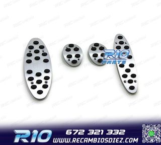 Móvel: 672 321 332 - Referencia: RLC012249. PEDALES MINI COOPER R50 R53 R55 R56 R57 01- ALUMINIO MANUAL Válido para: BMW Mini Cooper R50 / R53 / R55 / R56 / R57 (06/2001-) Sólo Transmisión manual Incluye: Pedal de acelerador Pedal de freno Pedal embrague Reposapies Material. Fabricados en aluminio pulido con gomas antideslizantes. Montaje. Montaje sencillo, incluye tornilleria. Estos no son productos originales de la marca MINI. El artículo ofrecido, solo es compatible para los modelos de vehículos descritos.