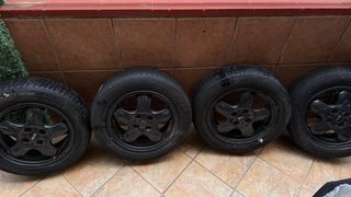 Juego de cuatro ruedas completas para Mini Cooper. - Llantas negras. - Neumáticos en buen estado.