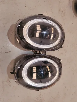 Se venden dos faros delanteros para Mini Cooper. Presentan algunos daños visibles en la carcasa. Puedes comprarle la cubierta transparente en AliExpress y cambiarla tú mismo. Alguna para rota y faltan las rpas traseras. Es el de aro de luz diurna completo. Precio de la pareja.